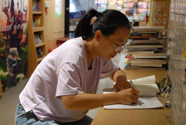 7月28日,返乡度假的大学生在青岛市即墨区书店内做读书笔记。
